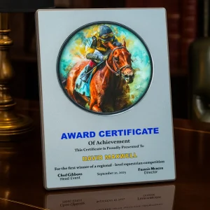 A4 Aluminum Award Plaques with Round Colored Plate and Stand